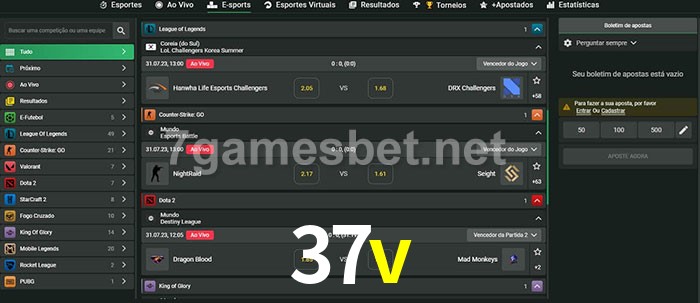 O 37v oferece uma grande seleção de opções de apostas em e-sports com probabilidades competitivas